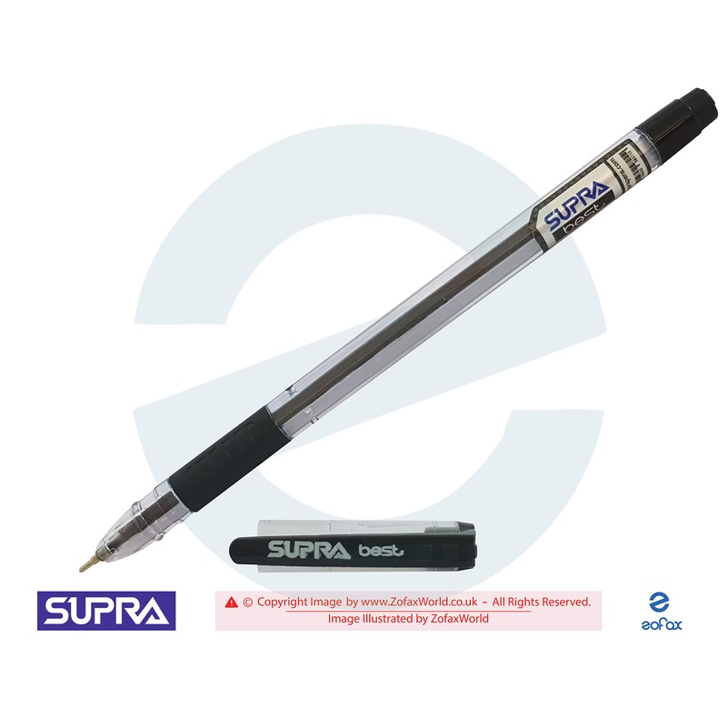 SUPRA Best Ballpoint Pens Soft Rubber Grip Smooth Writing Office School Home Multi Pack (5 x 0.7mm Fine BLACK Ball Pens + 1 x ZOFAX Classy Ball BLACK Pen)