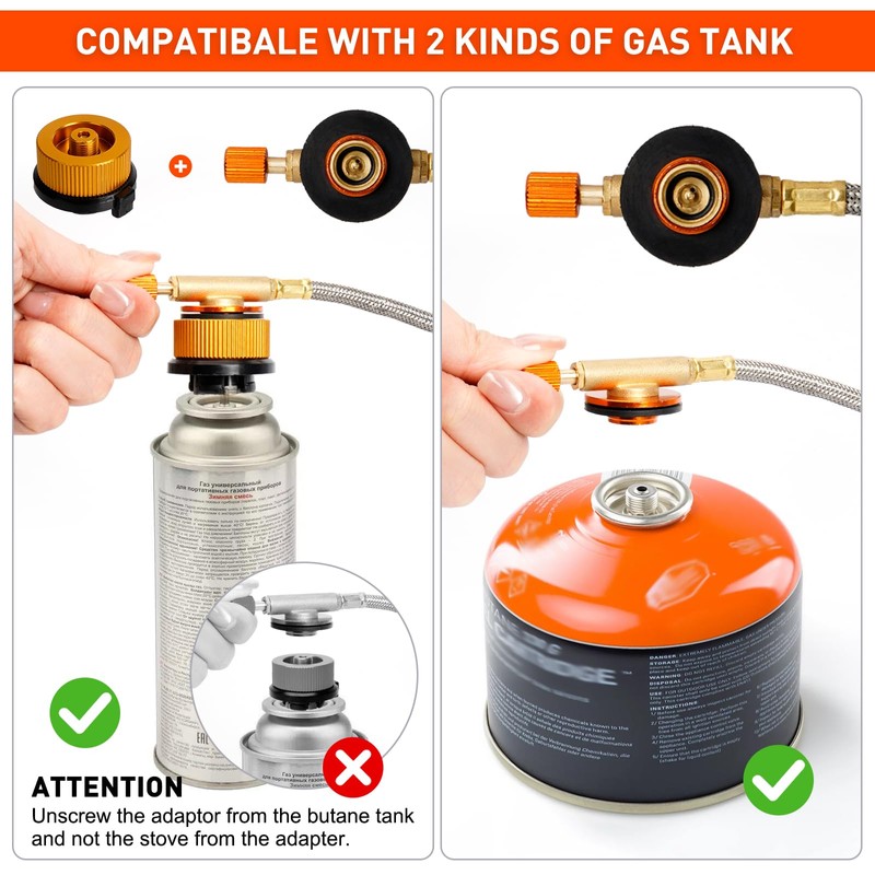 - Wide compatibility: the gas cookers are equipped with 2 types of adapters that are suitable for all types of gas tanks. Durable gas cooker made of aluminium alloy and stainless steel, equipped with piezo ignition and flame regulator, make it more convenient and practical.