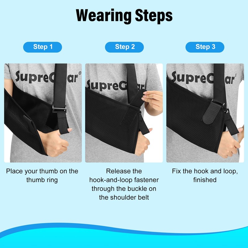 - Positive and Effective: utilizing a suitable arm sling is important in immobilizing arm and preventing future injury; supregear arm sling is ideal for post-operative recovery, fracture, dislocation and subluxation, rotator cuff repairs, or other types of arm or hand injury; fits either right or left arm, male or female