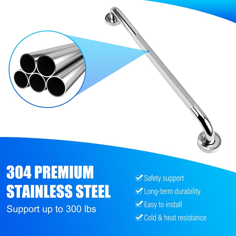 - The Grab Bar Rail length is 30.48 cm and measures 2.54 cm in diameter, made of 304 stainless steel structure, which can ensure the durability; the chromium coating on the surface can resist corrosion, providing you with strong support and easy to clean