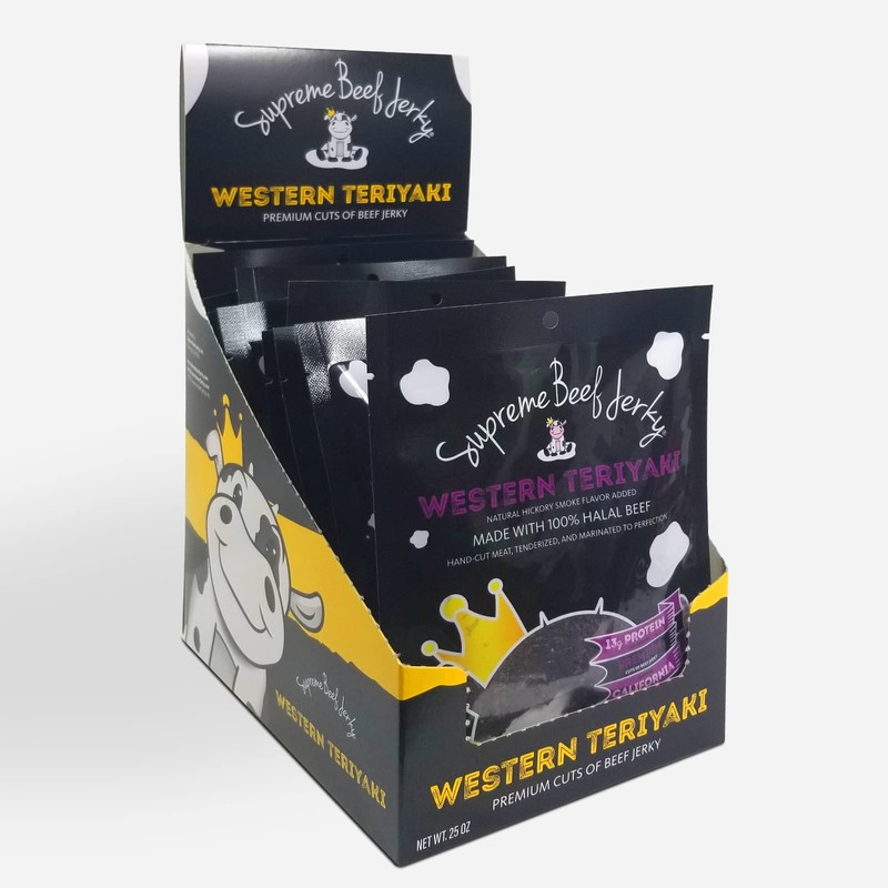 Supreme Beef Jerky, Halal Beef Jerky, Handcrafted Gourmet Meat Snacks, 10-Pack (2.5 oz bags) Western Teriyaki, Brown