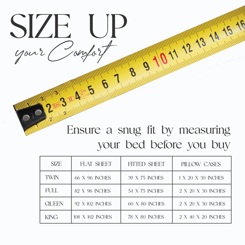 • What’s in the Set: This queen size sheet set includes 1 flat sheet (92 inches wide x 102 inches long), 1 fitted sheet (60 inches wide x 80 inches long), and 2 standard pillowcases (20 inches wide x 30 inches long) to best suit your requirement.