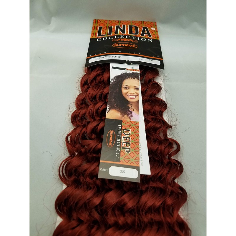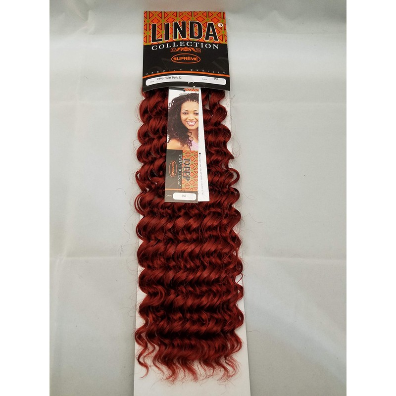 Supreme Linda Collection Synthetic Braiding Deep Twist Bulk Linda Collection High Performance Synthetic Fibers Easy To Maintain Long Lasting Maintenance: Wash in cool to lukewarm water. Do not wash with hot water. Using a mild conditioning shampoo, gently cleanse the waft and let shampoo water run through hair. Do not rub or massage the hair. Rinse throughly with cool water and apply conditioner if desired. Pat hair with towel and air dry. Do not comb, blow dry or heat style while wet-this can permanently damage the fiber. Hair will return to its original curl pattern once it is completely dry. When dry, style as desired.