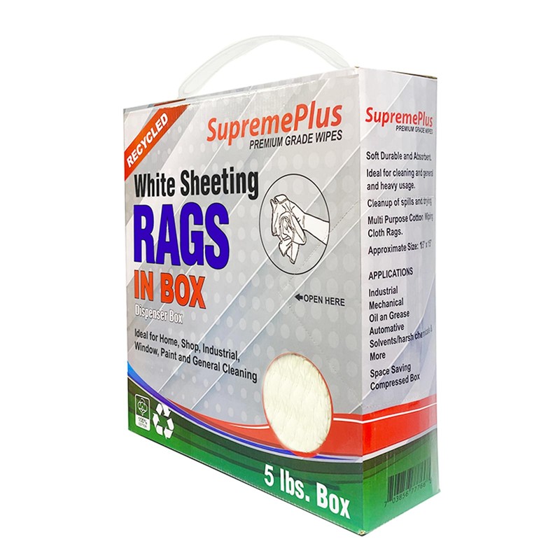 SupremePlus Recycled White Sheeting Cleaning Rags – White Cotton Rag for Household, Shop, Auto Garage, Paint | Shop Rags Bulk for Multipurpose use (5 lbs. Compressed Box)
