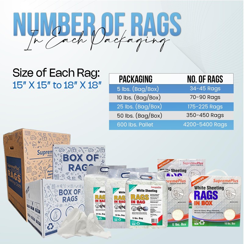 - 𝐘𝐨𝐮𝐫 𝐀𝐥𝐥-𝐏𝐮𝐫𝐩𝐨𝐬𝐞 𝐒𝐨𝐥𝐮𝐭𝐢𝐨𝐧: This white sheeting shop rag bag offers versatility and durability for any task. With bulk rags at your disposal, you’ll never run out of options for cleaning, wiping, or polishing. Perfect for those needing cleaning rags bulk for homes, workshops, or commercial use.