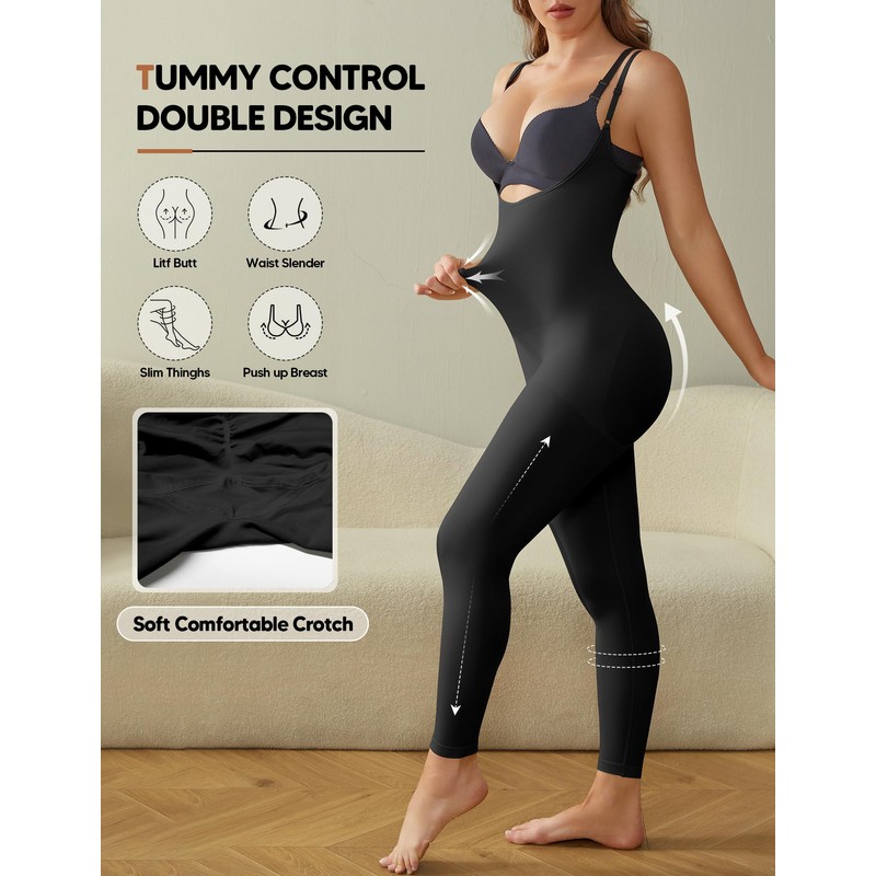 • Our Women's Open Bust Full Bodysuit features a push-up breast shapewear design that enhances your natural curves while allowing you to wear your favorite bra. The full-body tummy control shapewear provides targeted compression, smoothing the tummy and back for a sculpted look. Adjustable non-slip straps ensure a secure, roll-free fit for all-day comfort