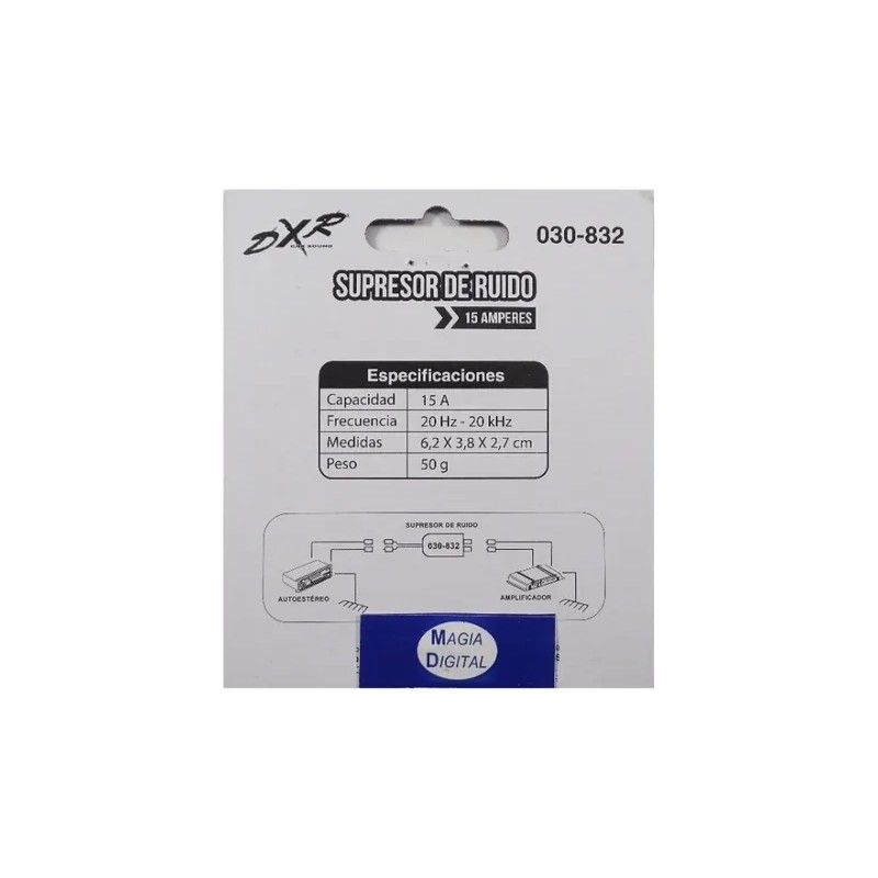 - Diseñado para eliminar ruidos indeseados en el sistema de audio del automóvil.