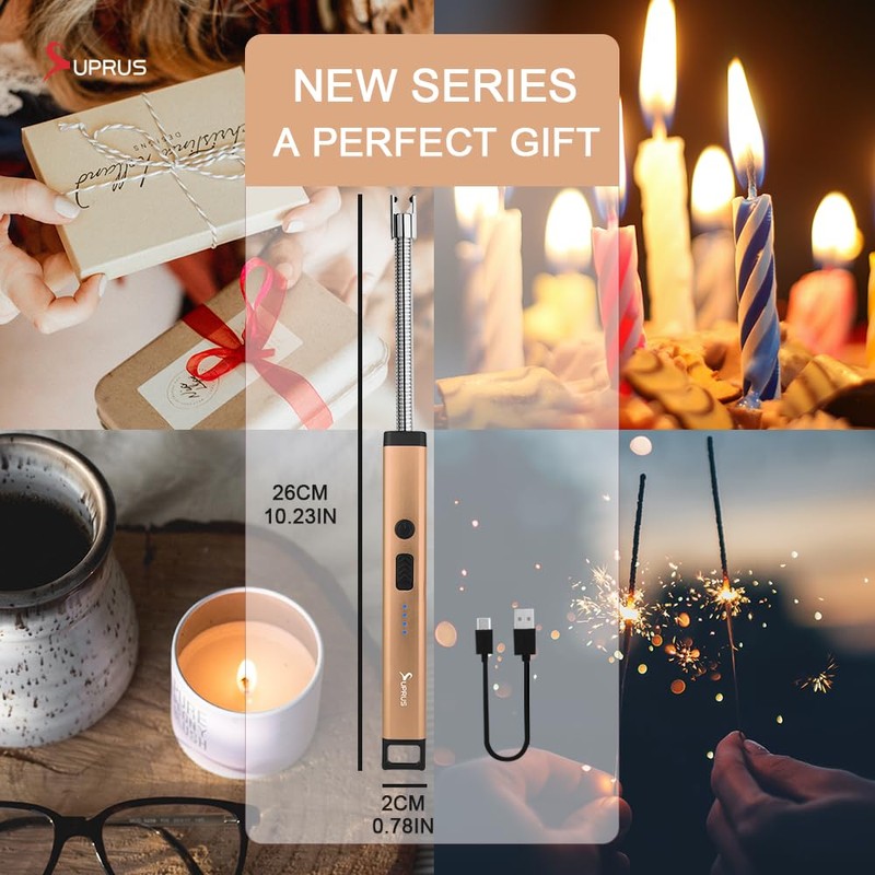 SUPRUS - Encendedor de vela recargable con arco eléctrico, triple seguridad, carcasa de acero inoxidable y gancho para colgar