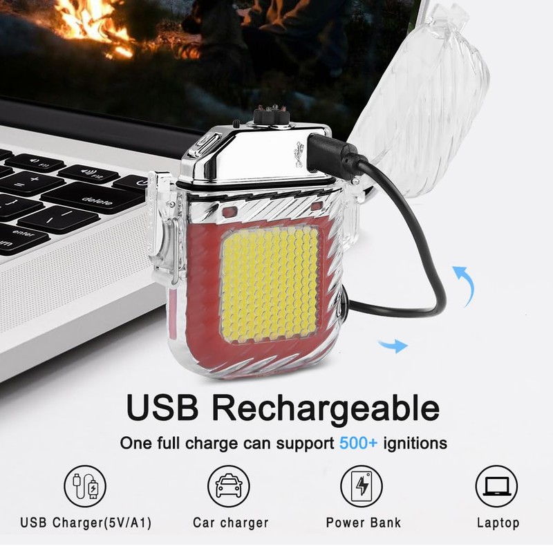 - Multiusos: resistente al viento y sin llama, encendedor de arco recargable USB. Es un encendedor perfecto para exteriores, herramienta de inicio de incendios de campamento, una herramienta de inicio de incendios de emergencia, equipo táctico de supervivencia de campamento edc y mucho más.