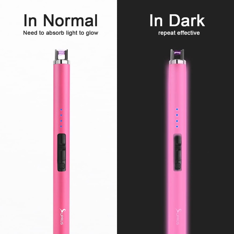 - Notificación de batería: e es el encendedor de arco SUPRUS mejorado que puede mostrar el volumen de la batería en tiempo real. Cuando las 4 luces LED en el barril se encienden, se cargapletamente.