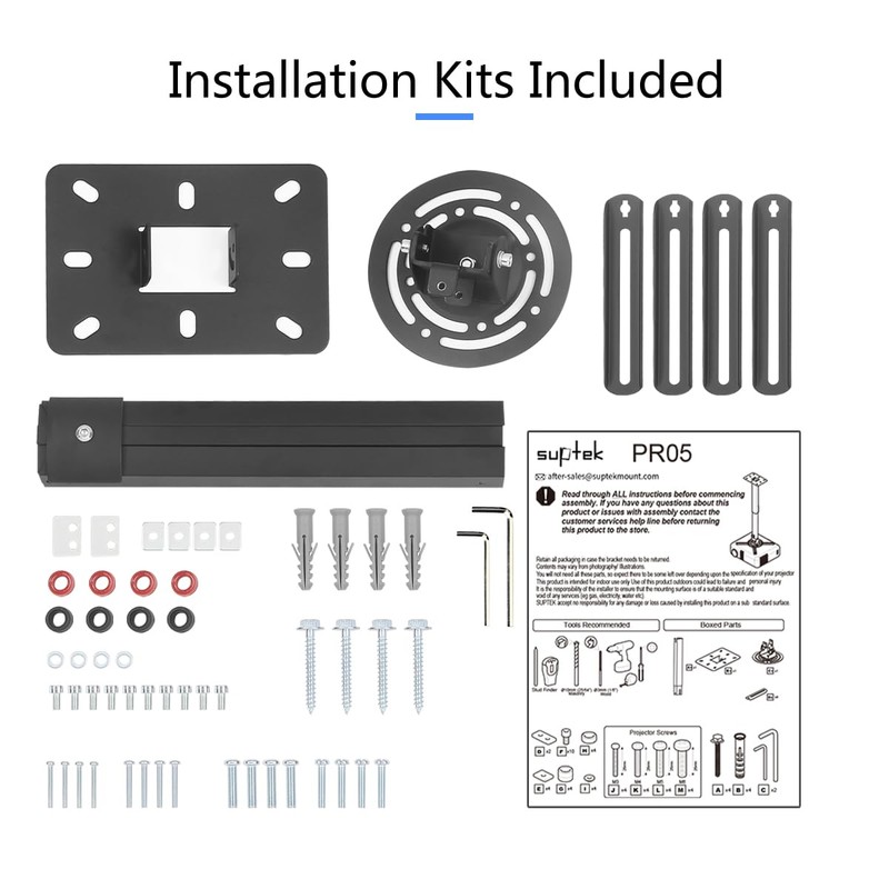 • Universal - compatible with projectors whose mounting holes are under 11.41" and weight under 30lbs (13.6kg)