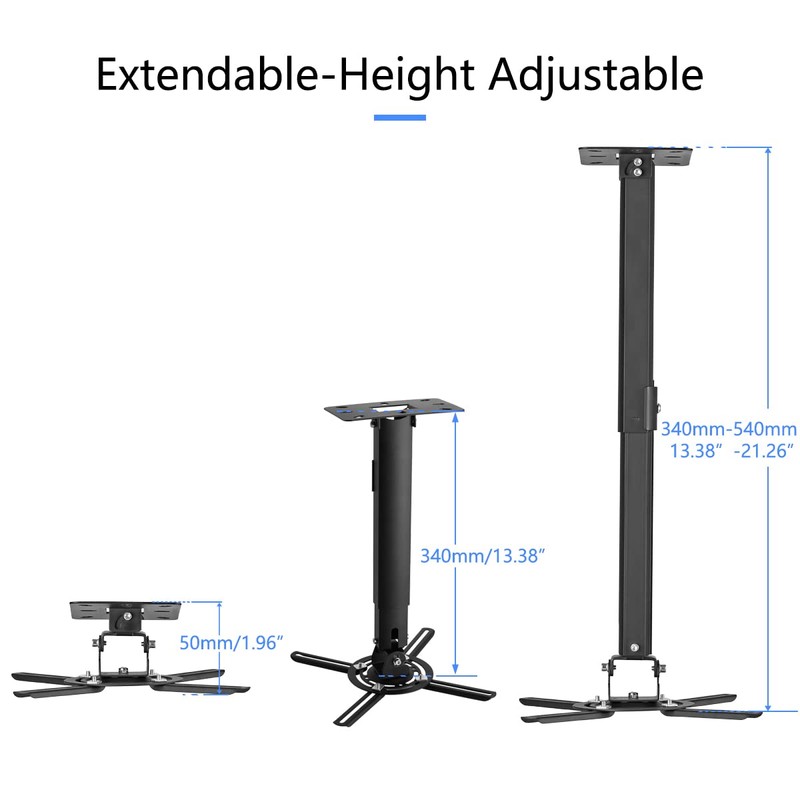 suptek Black Projector Ceiling Mount Bracket Fits Flat or Sloped Ceiling Height Adjustable with Extendable Length for LCD/DLP Projector Mount (PR05B)