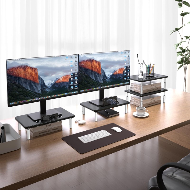 - SIMPLE ASSEMBLY - Our monitor laptop stand riser comes with 1 platform and 4 legs, all you need to do is just screw the 4 legs into the platform. No tools required. One minute is enough.