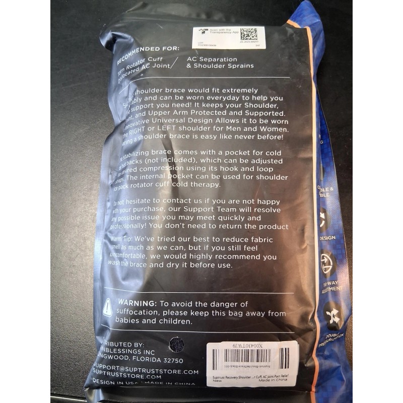 Suptrust Recovery Shoulder Brace for Men and Women, One Size, Black