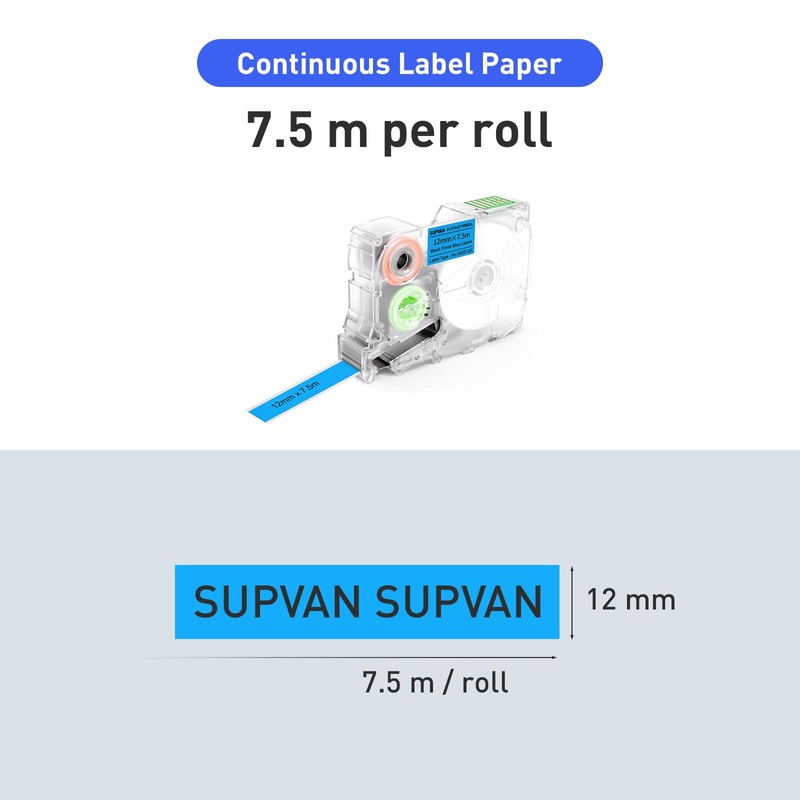 - Suitable for SUPVAN G15M Mini/G15M/G15M Pro: 0.47in× 24.6ft Continuous label (12 mm x 7.5 m)