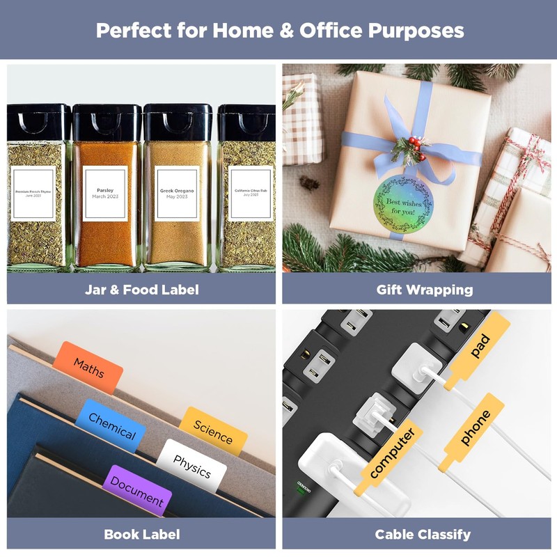 • Thermal Label Maker Tape: By using thermal technology, T50M label makers never need ink or toner for printing, with printing limited to black only.While ensuring cost-effectiveness, it also makes sure of high printing quality with no fading. Note: The thermal printing labels are not suitable for direct sunlight exposure