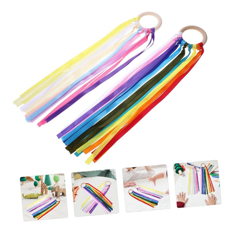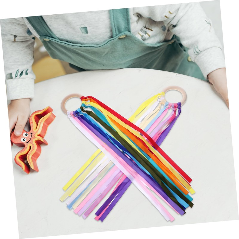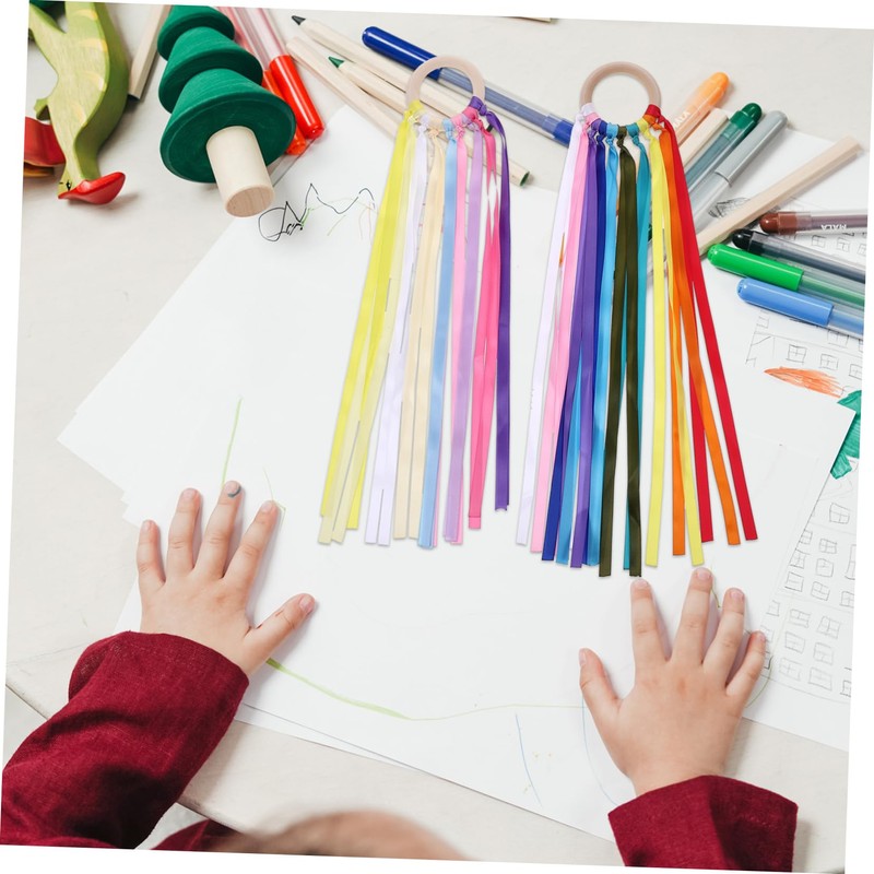 SUPVOX 2Pcs Hand Kite Ribbon Streamer Creative Sensory Training with Wooden Ring for Dance Gymnastics and Party Activities