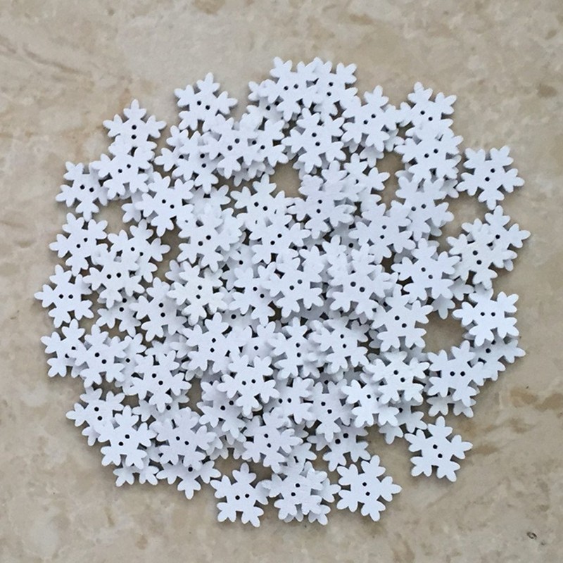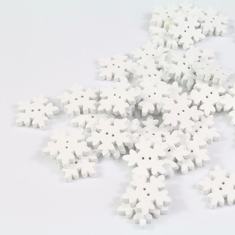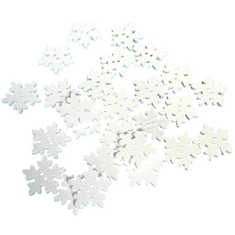 Pack of 50 x Christmas Holiday Wooden Collection Snowflakes Buttons Snowflake Embellishments 18 mm Creative Decoration