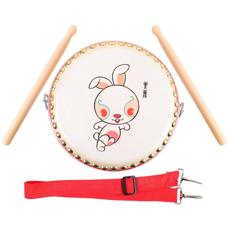 SUPVOX 7 Inch Wooden Drum: Wooden Drum Set with an Adjustable Strap and 2 Drumsticks - Drum Sensory Musical Instrument with Chinese Zodiac Rabbit Pattern for Kids Sensory Learning