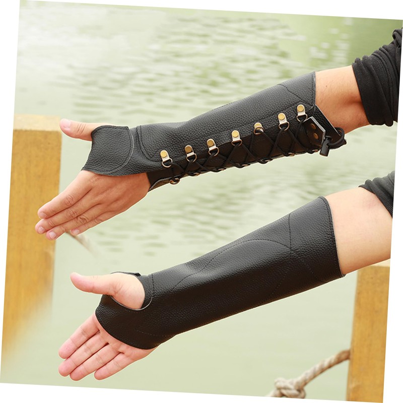 SUPVOX Archery Arm Guard Pu Leather Forearm Protector for Outdoor Shooting Practice Comfortable Shooting Glove with Thumb Wrap and Washable Fits All
