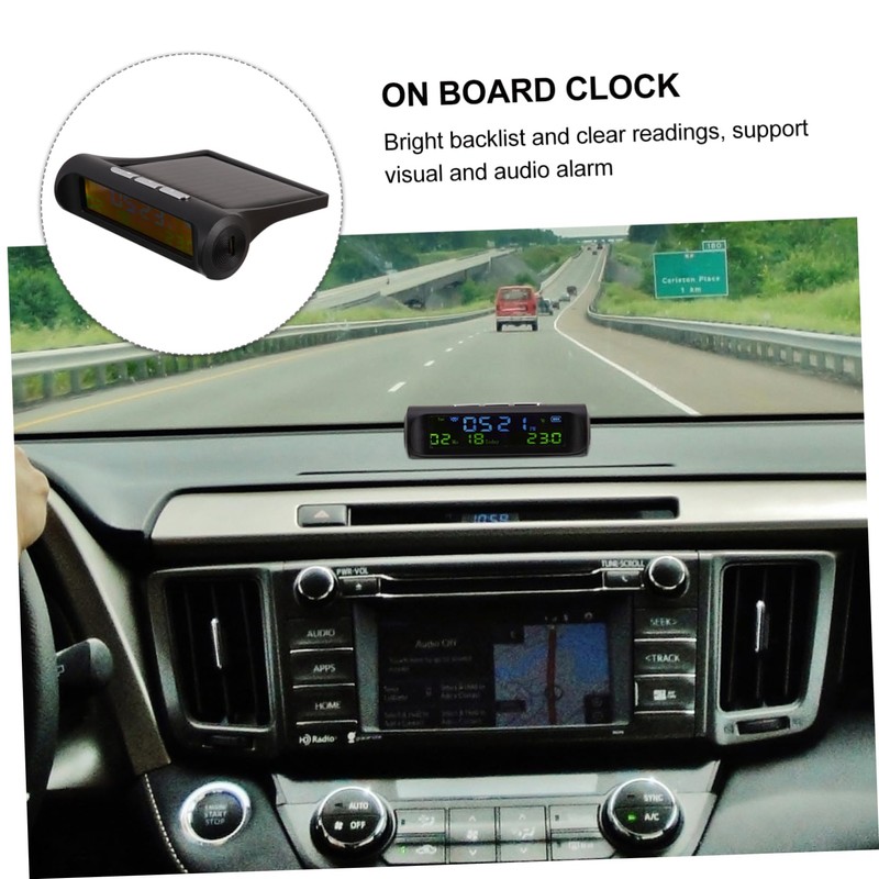 - Car dashboard electronic clock: combined with the solar energy display, it lets driver get the real-time tire pressure data, temperature data and status, warning messages at once.