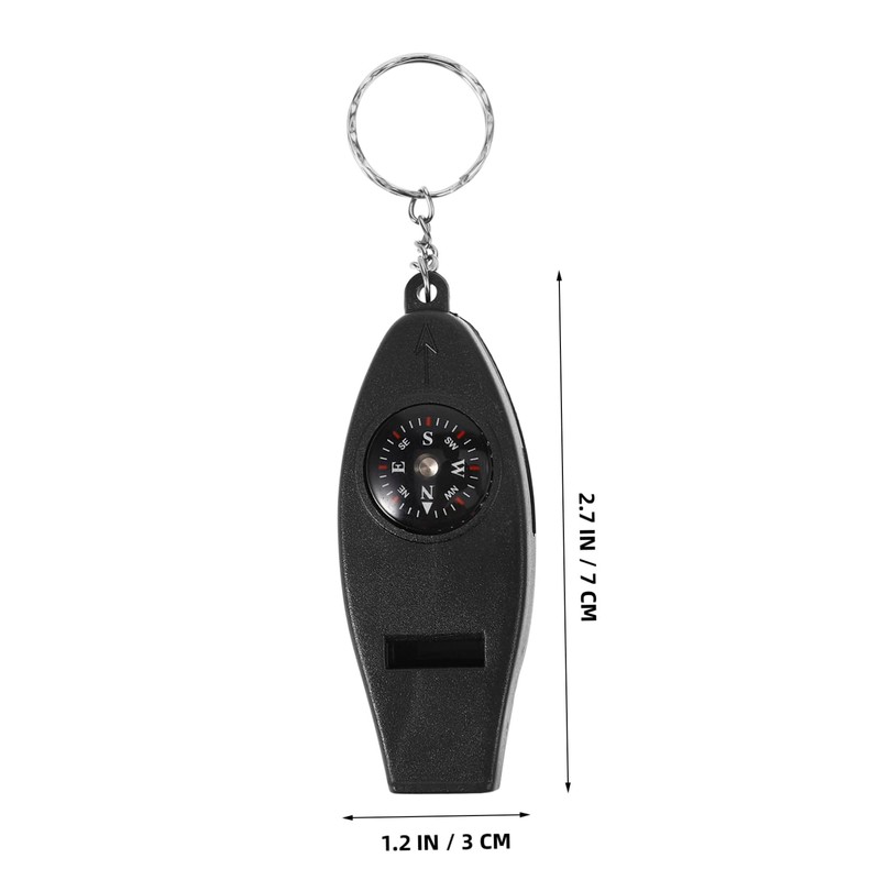 -Featuring a keychain, this compact-sized whistle compass allows for easy access and portability compass whistle for hiking.