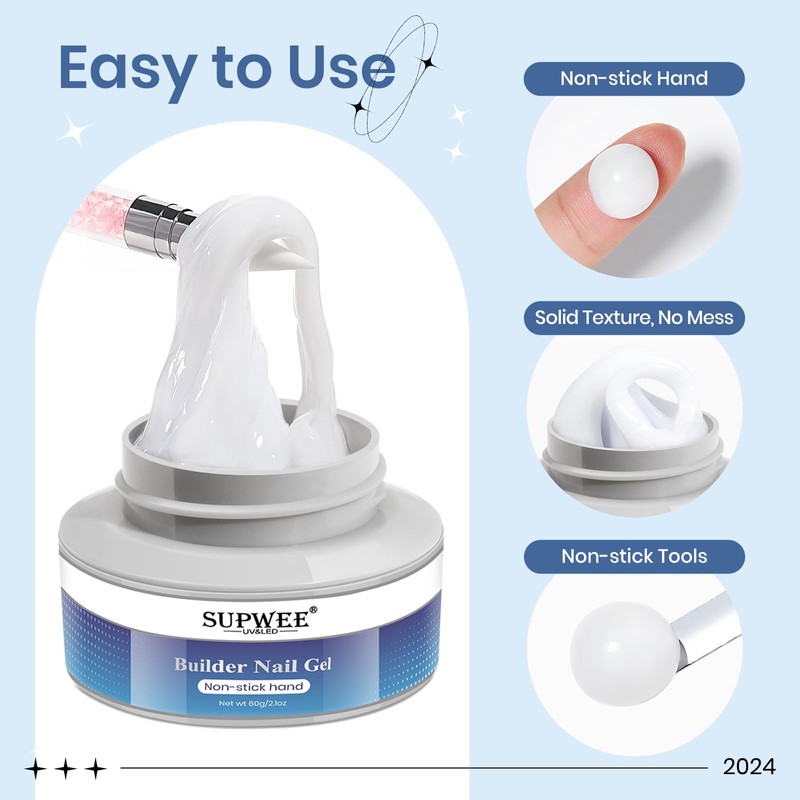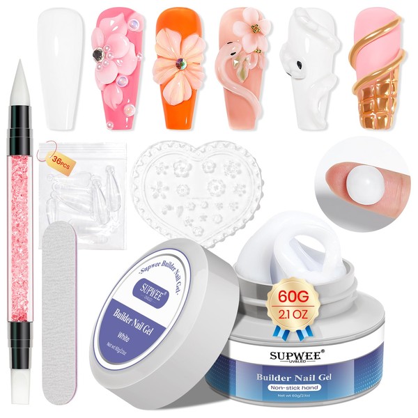 SUPWEE Solid Builder Gel - 60G White 3D Nail Art Sculpture Gel Multifunctional Non-Stick Nail Extension Gel Solid Builder Gel for Nails Patterns Embossing Hard Gel with UV Nail Lamp