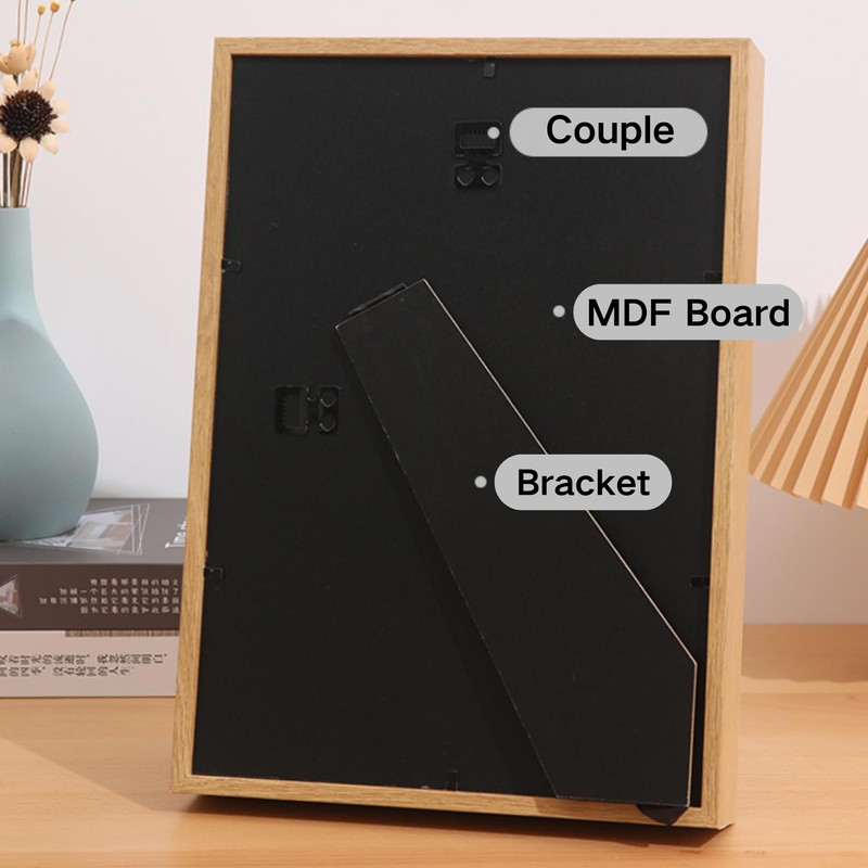 - Dual Purpose Hanging The wooden frame has behind it a stand and a hook, which can be placed on the desk or hung on the wall, with a stronger decorative value.