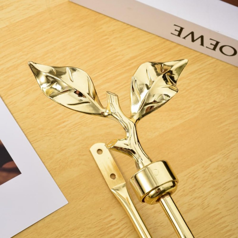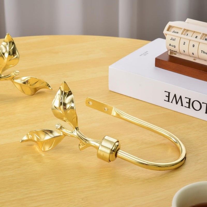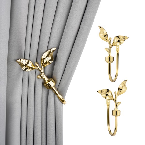 SUQ I OME 1 Pair of Leaf Shaped Curtain Holdbacks Metal Curtain Side Holders for Wall, Antique Brass Curtain Tieback Hook Pull Backs for Drapes Window Home Decoration,Golden