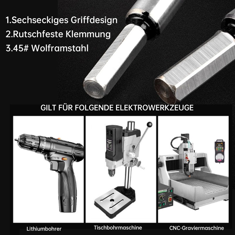 - Foster-Bohrer: Hergestellt aus Originallegierungsmaterial, Wärmebehandelte dreischneidige Schneidklinge aus Wolframstahl eine gleichmäßigere Kraft, die Klinge wackelt beim Bohren nicht, hat eine hohe Rundlaufgenauigkeit und die Vorschubgeschwindigkeit im Loch ist schneller.