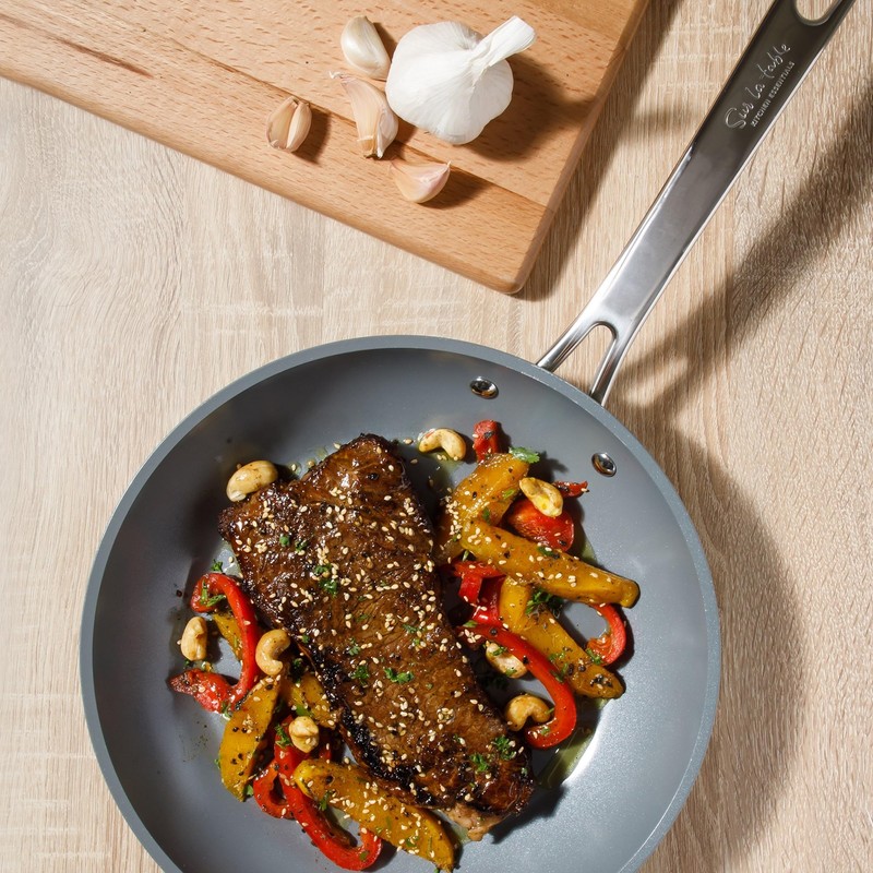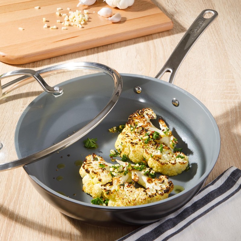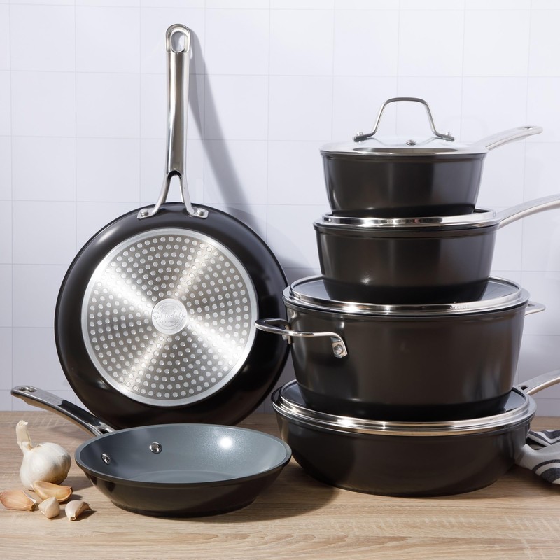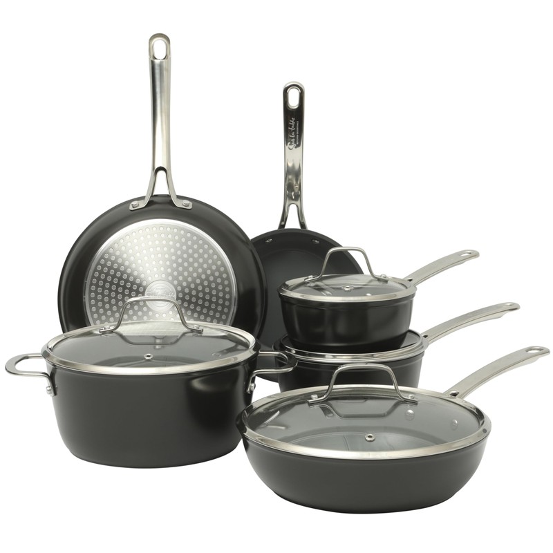 - Sur La Table Kitchen Essentials Cool Commune Hard Anodized 10 Piece PFA Free Ceramic Non stick Interior Forged Durable Aluminum Pots and Pans Cookware Set - Black - Induction Compatible