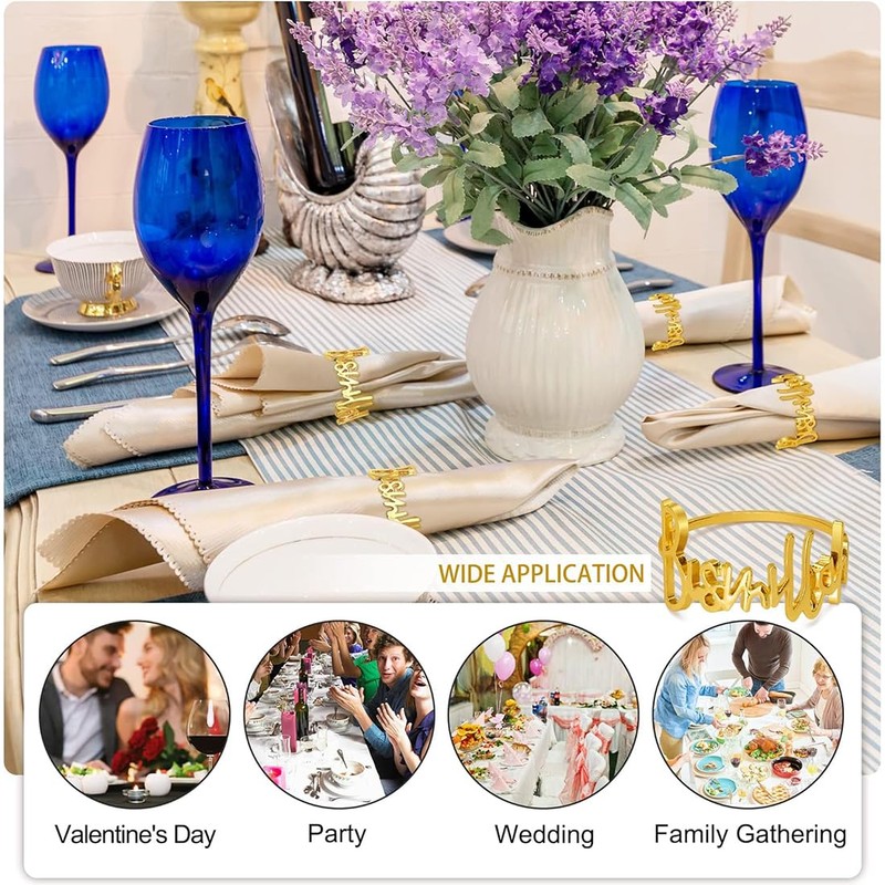 Geeignete Anlässe: Goldene Serviettenringe eignen sich nicht nur für das Eid-Fest oder andere Feste, sondern auch perfekt für Abendessen, Partys, Hochzeiten, Silvester, Ramadan, Eid, Feiern, Festivals, Bankette, Feiertage und besondere Anlässe.