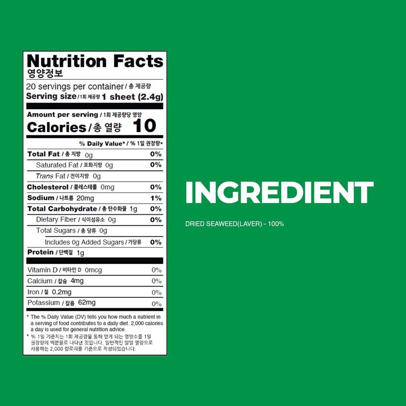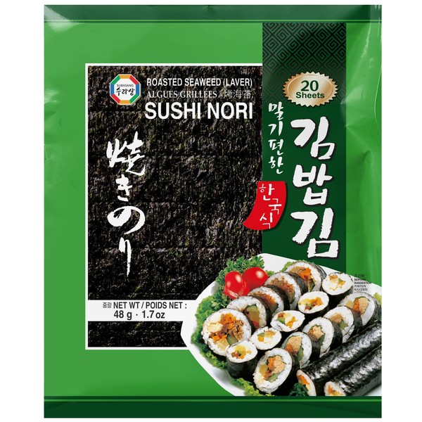 Surasang Gimbap Roasted Seaweed Sheet, Korean Food, Sushi Nori, 20 Full Sheets, Pack of 1