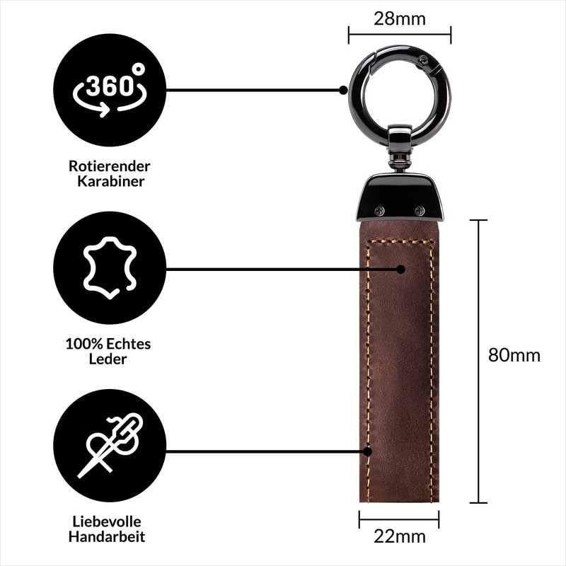 - Premium leather: forget about cheap imitation leather. This keyring is made from 100% genuine leather from the oldest and largest European tanneries. High-quality vintage cowhide leather of the type "Crazy Horse" - strong, wild and with a rustic look. Over time, the leather darkens and acquires elegant patine.