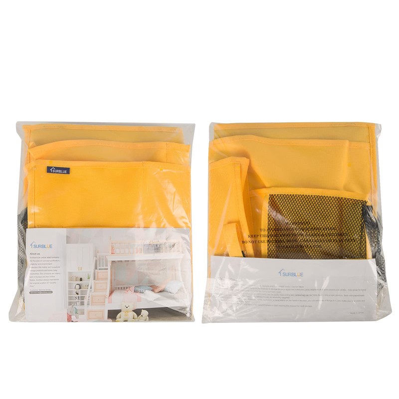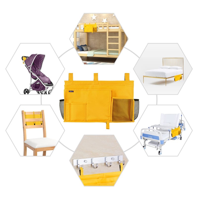 Surblue Bedside Caddy Hanging Bed Organizer Storage Bag Pocket for Bunk and Hospital Beds, College Dorm Rooms Baby Bed Rails,Camp (8 Pockets),Yellow