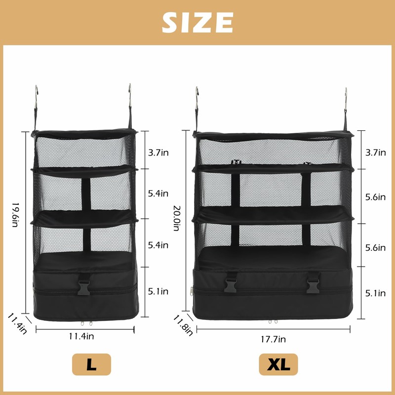 • Large-capacity size: (Hanging Size) L size: 11.41*11.41*19.68in XL size: 17.71*11.81*20in (Folded Size when not in Use) L size: 11.41*11.41*1.57in XL size: 17.71*11.81*1.57in
