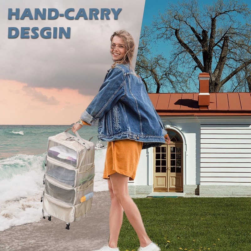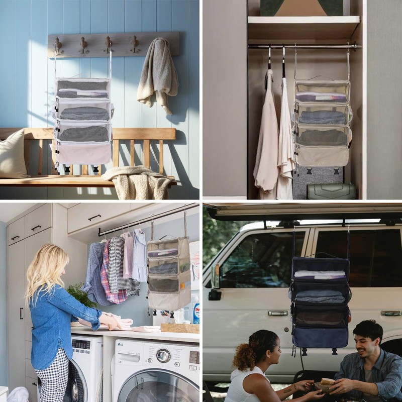 - Time and Space-Saver: The hanging suitcase organizer is a great helper for home storage, whether they are placed in the closet, behind the door, or even kitchen, or bathroom to meet your various storage demands. The hanging travel organizer is also the perfect companion for your outdoor activities, travel, and business trips.