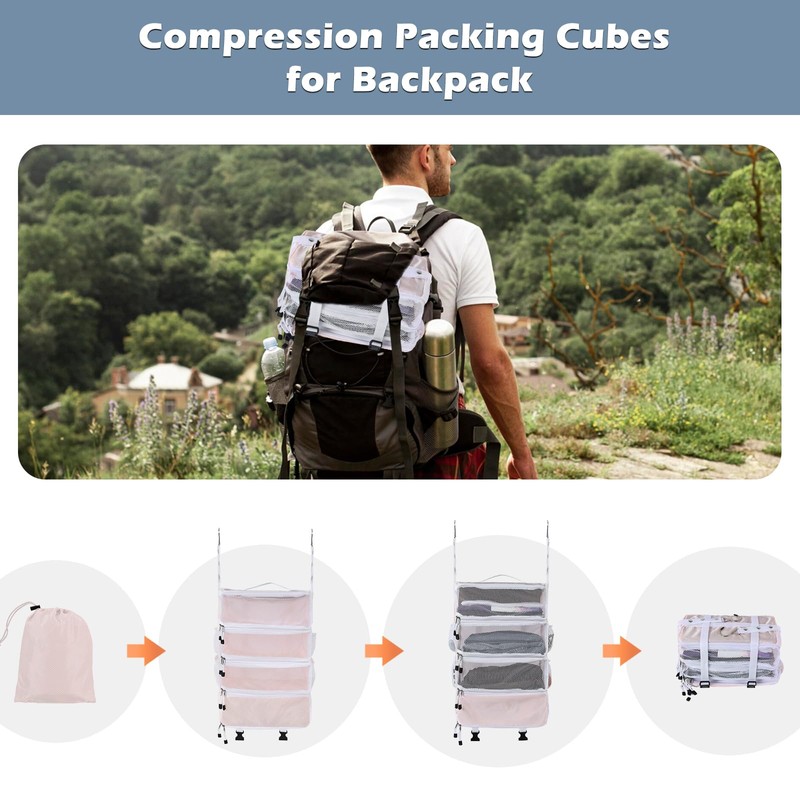 Surblue Hanging Travel Organizer Portable Hanging Luggage Organizer Multiple Compartments Collapsible Compression Closet Packing Cubes,Pink,M
