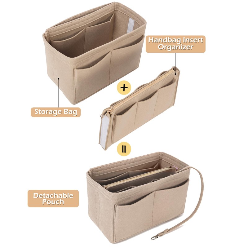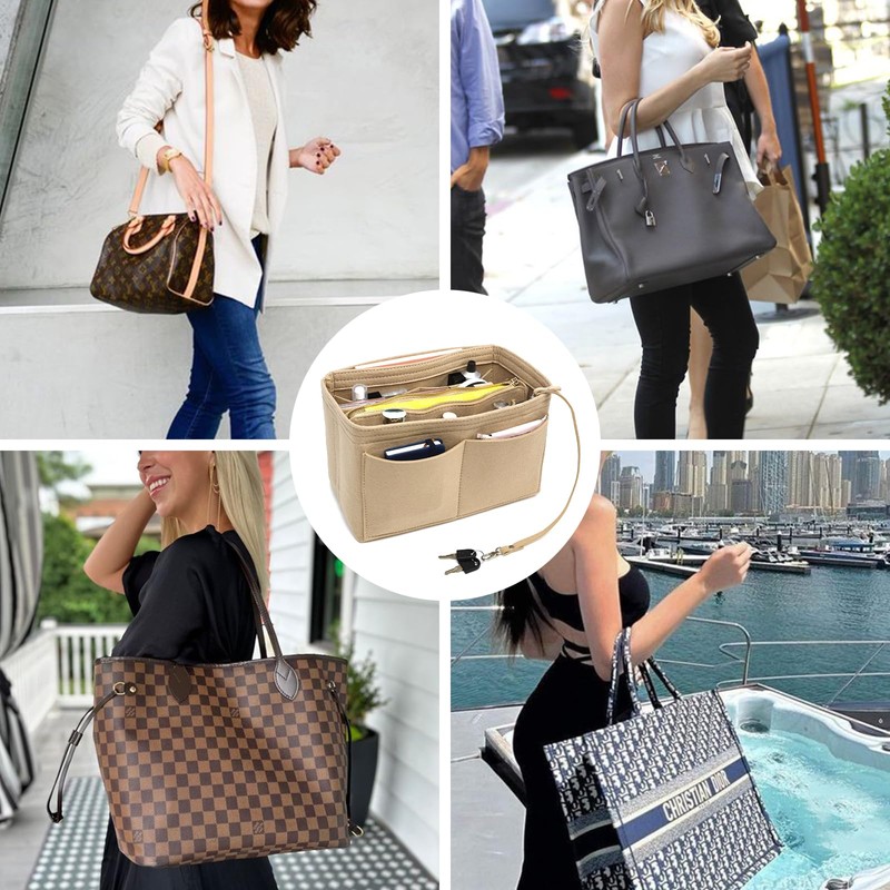 Surblue Purse Organizer Insert for Handbags, Felt Bag Organizer, Tote Bag Organizer, Tote Shaper Insert With Zippers, Thicken and Portable Handbag in Bag for Speedy Neverfull PM MM,(NewKhaki, M)