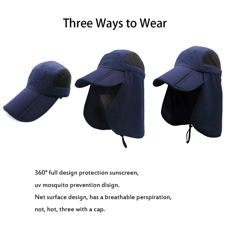 Surblue - Sombrero para el cuello con solapa para exteriores, protección UV, sombrero de ala ancha, secado rápido, UPF50+, para mujeres y niños, color azul oscuro