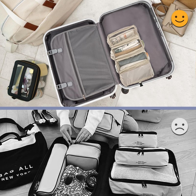 - Multiple Compartments: 4 main compartments provide ample storage space, allowing you to separate your dirty laundry from your clean clothes even on long trips. There are a total of 4 side pockets on both sides which are perfect for storing small items such as keys, glasses, skincare products, water bottles, drinks, and more.