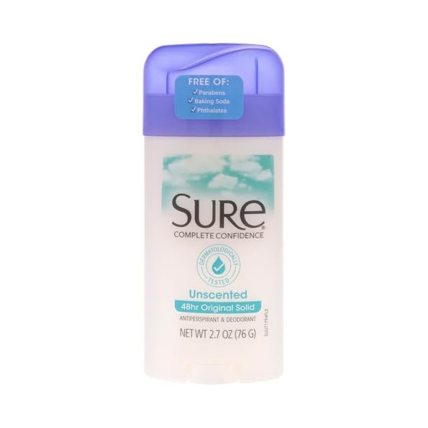 Sure Original Solid Unscented, Anti-Perspirant Deodorant 2.70 oz- Packaging may vary
