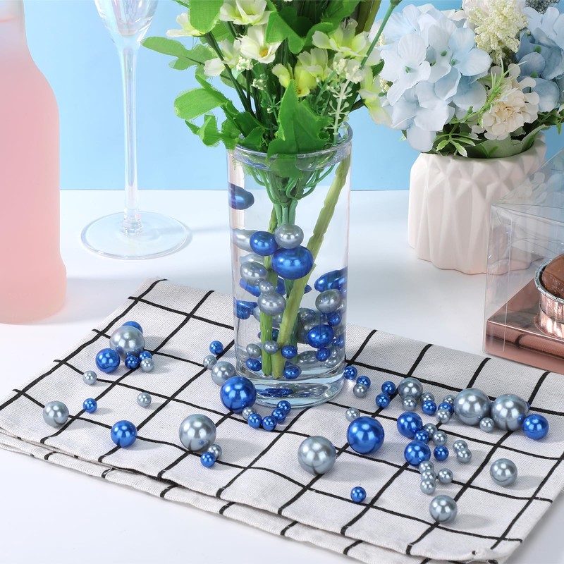 - 【Beautiful Vase Fillers】You'll receive 500 exquisitely crafted hole-free pearls in three sizes (8mm, 14mm, 20mm) and two colors (silver and royal blue), providing a variety of options for creative combinations. Additionally, you'll get 2300 pcs of clear water gel beads for easy use and replacement.