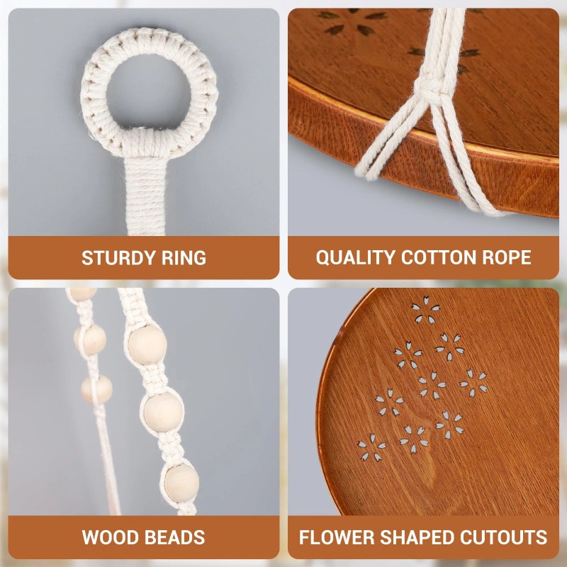 【High Quality&Unique Design】Our macrame plant hangers are made from 100% pure cotton cord, free from any artificial ingredients or chemicals. The boho plant hanger features a premium-quality wooden base with beautiful flower cutouts. Easily create a dreamy bohemian ambiance in any room.