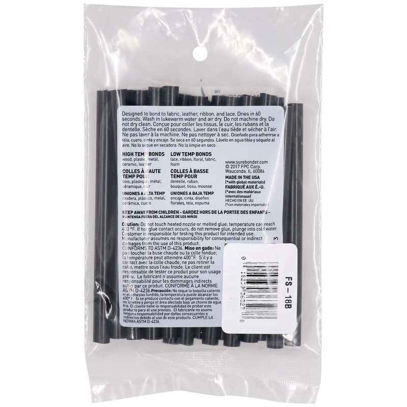 Surebonder Black Fabric Hot Glue Stick, Mini Size 4" L, 5/16" D - 18 Pack, Machine Washable, Use with High Temperature Glue Guns - Made in USA (FS-18B)