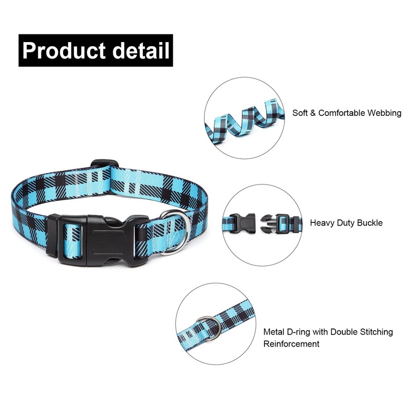 Suredoo Adjustable Dog Collar with Patterns, Ultra Comfy Soft Nylon Breathable Pet Collar for Small Medium Large Dogs (L, Blue Plaid)