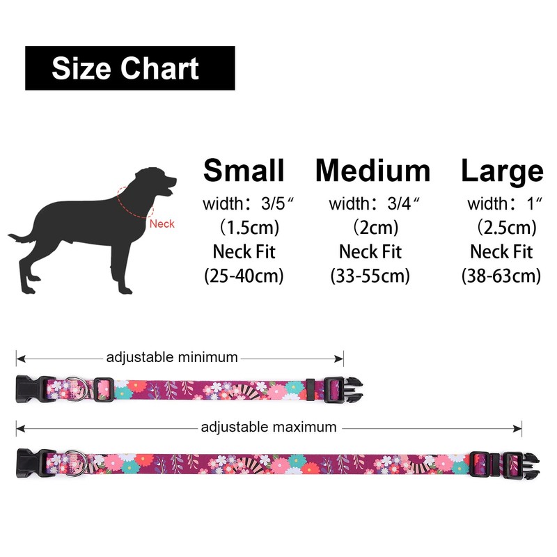 Suredoo Dog Collar, Adjustable, Soft and Comfortable, Nylon, for Small / Medium / Large Dogs, Puppies, Cats (M, Colourful Flowers)