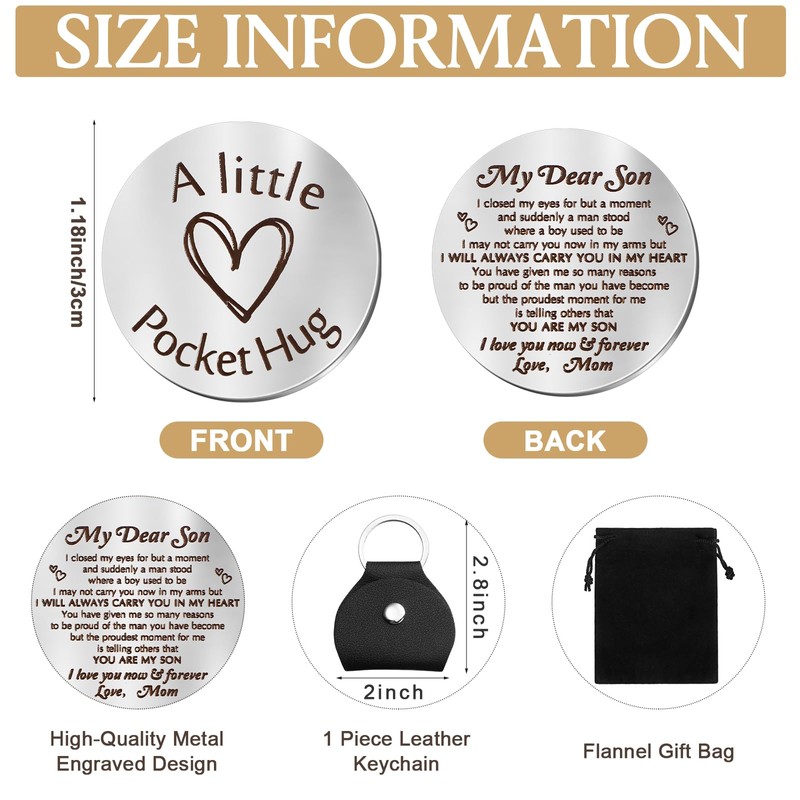 - Delicate combination: you will receive 1 piece of stainless steel pocket hug token and a piece of PU leather keychain, the package also comes with 1 bag for you to store them well and package them as gifts