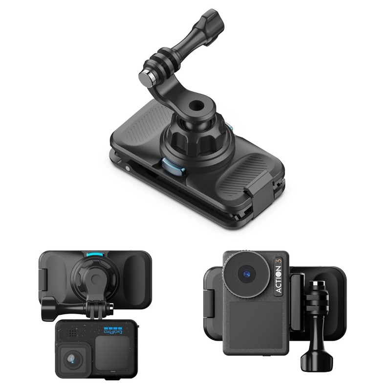 - BALL HEAD JOINT DESIGN & MORE SHOOTING ANGLES: The 360° rotation backpack clip mount extends the 360° ball head design, so that the camera's shooting angle breaks through the limitations of the plane. It really realizes the vertical perspective shooting and meets the user's demand for more angles.