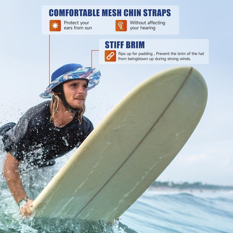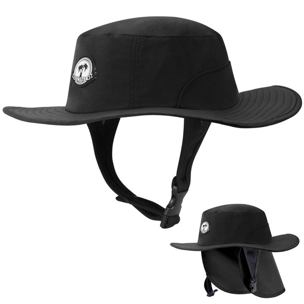 Surf Bucket Hat with Chin Straps and Neck Flap for Surfing, Kayaking,SUP, and Watersports (US, Alpha, Large, Black)